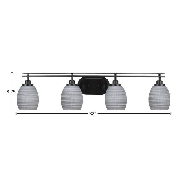 Monroe 38 in. 4-Light Matte Black Vanity Light with 5 in. Gray Matrix Glass Shade No Bulbs Included