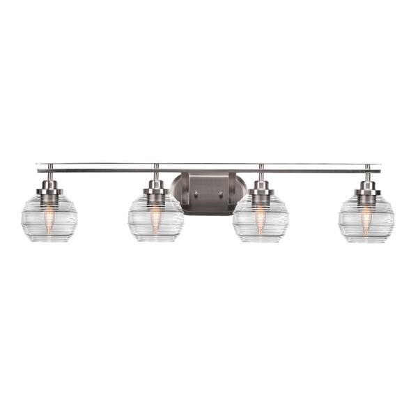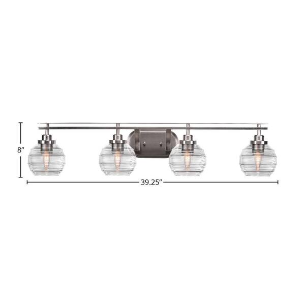 Monroe 39.25 in. 4-Light Brushed Nickel Vanity Light with 6 in. Clear Ribbed Glass Shade no Bulbs Included