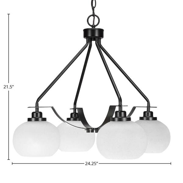 Monroe 4-Light Matte Black Cluster Chandelier for Dinning Table with 7 in. White Muslin Glass No Bulbs Included