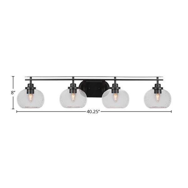 Monroe 40.25 in. 4-Light Matte Black Vanity Light with 7 in. Clear Bubble Glass Shade No Bulbs Included