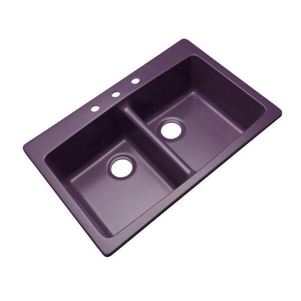 Waterbrook Dual Mount Composite Granite 33 in. 3-Hole Double Bowl Kitchen Sink in Plum