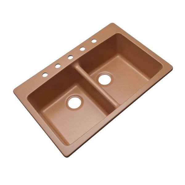 Waterbrook Dual Mount Composite Granite 33 in. 5-Hole Double Bowl Kitchen Sink in Peach