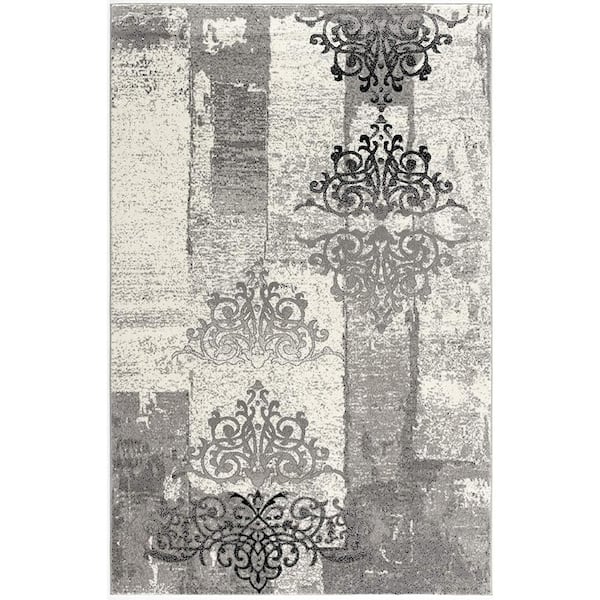 Montage Grey 2 ft. 3 in. x 5 ft. Modern Abstract Doormat Area Rug Entrance Floor Mat