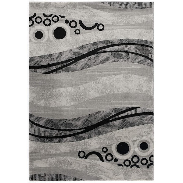 Montage Grey 2 ft. 8 in. x 5 ft. Modern Abstract Area Rug Doormat Entrance Floor Mat