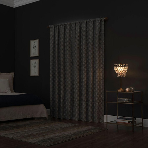 Montauk Art Deco 100% 50 in. W x 84 in. L Blackout Back Tab Curtain Panel in Navy