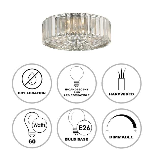 13 in. 2-Light Chrome and Crystal Flush Mount Ceiling Light