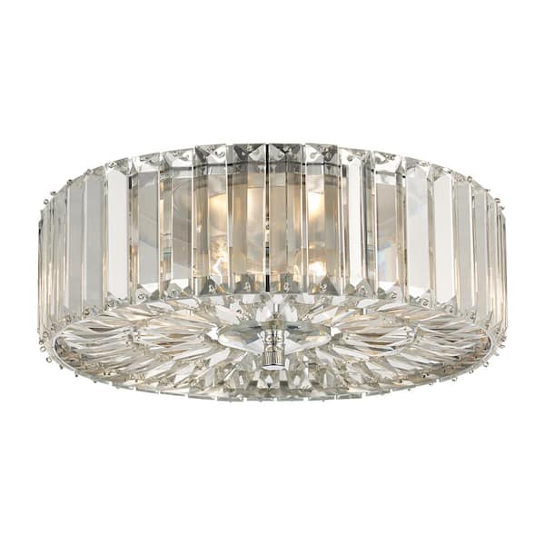 13 in. 2-Light Chrome and Crystal Flush Mount Ceiling Light