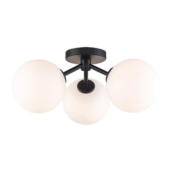 17.63 in. 3-Light Black Flush Mount Ceiling Light with Opal Glass Globe Shades