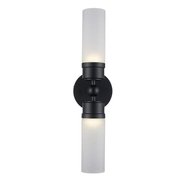 20.63 in. 2-Light Black LED Rechargeable Battery Operated Wall Sconce with Frosted Glass Shades, Remote Included