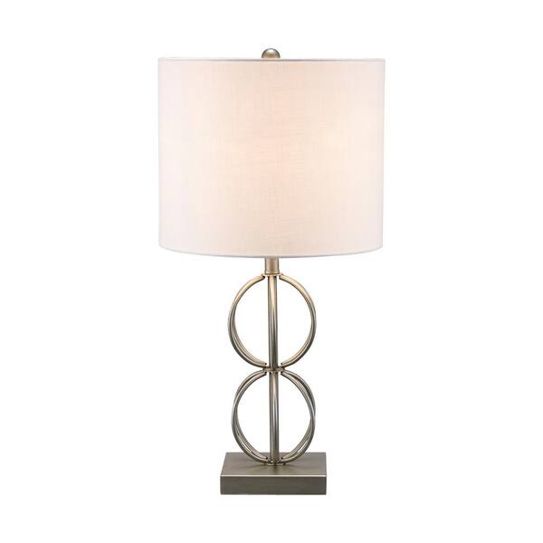 23 in. 1-Light Pewter Indoor Table Lamp with Fabric Lamp Shade and Geometric Metal base