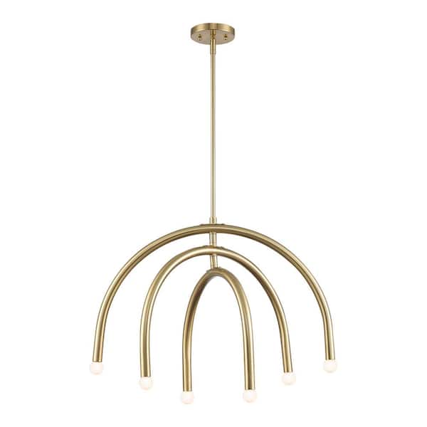 24 in. 6-Light Gold Arc Hanging Pendant Light Fixture