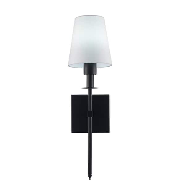6 in. Black LED Rechargeable Battery Operated Wall Sconce with Fabric Shade, Remote Included