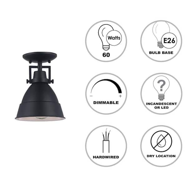 7 in. 1-Light Black Industrial Farmhouse Semi-Flush Mount Ceiling Light Fixture with Metal Shade