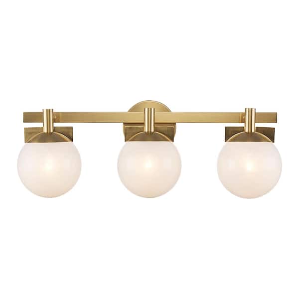Brooklyn 24 in. 3-Light Gold Bathroom Vanity Light Fixture with White Swirl Glass Shades