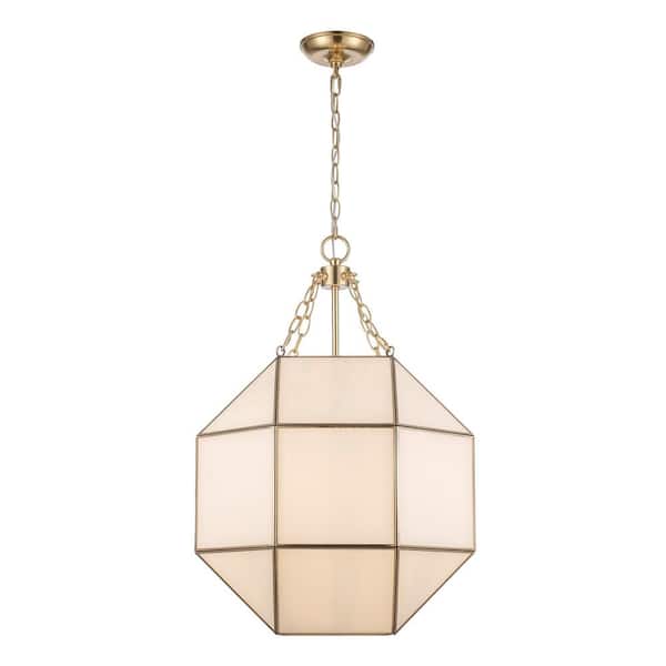 Ellis 18.5 in. 3-Light Gold Pendant Light Fixture with Satin White Glass Panels