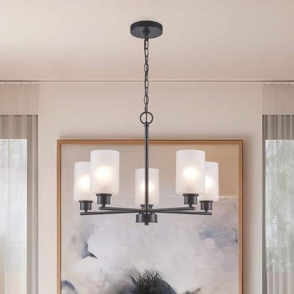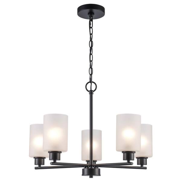 Heath 5-Light Black Chandelier Light Fixture with Frosted Glass Shades
