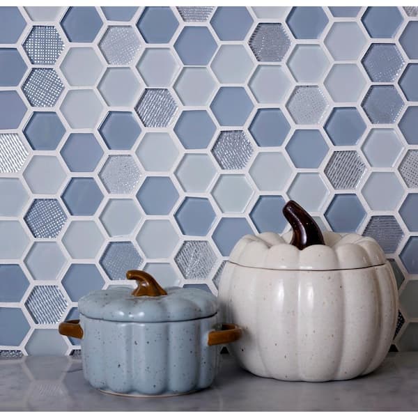 Moon Gray 4 in. x 5 in. Polished and Honed Hexagon Glass Mosaic Tile Sample (0.13 sq. ft./Piece)