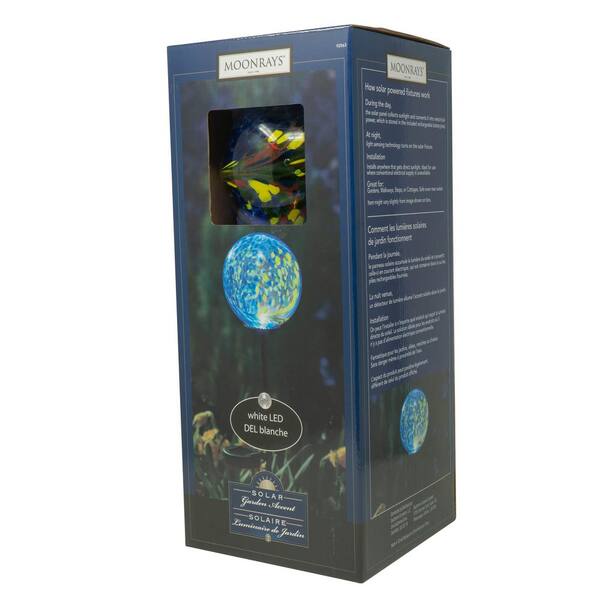 • Solar stake light illuminates outdoors with an LED glass globe