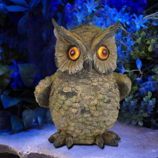 Solar Powered LED Brown Outdoor Owl with Blinking Eyes