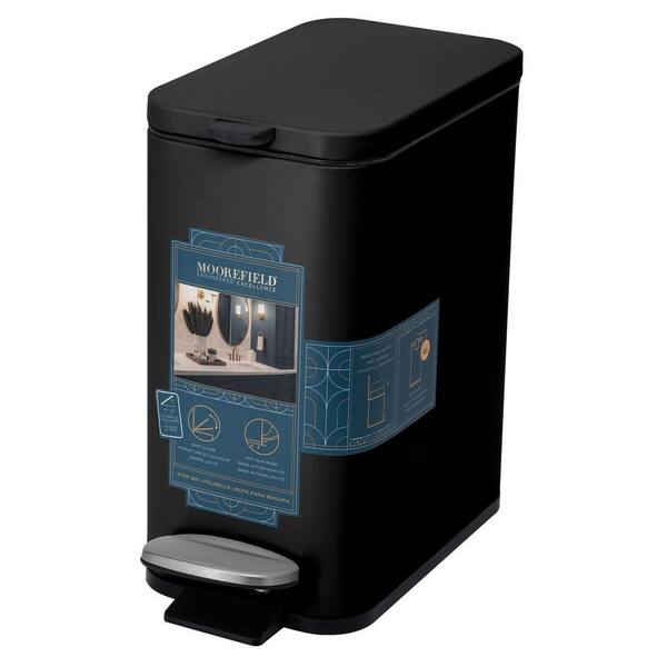 Slim Rectangular 5 L/1.3 Gal Pedal Trash Bin with Soft Close Lid in Matte Black