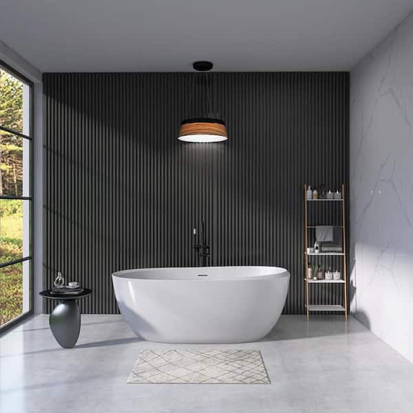 Moray 67 in. x 29 in. Acrylic Flatbottom Freestanding Soaking Non-Whirlpool Bathtub with Pop-up Drain in Glossy White