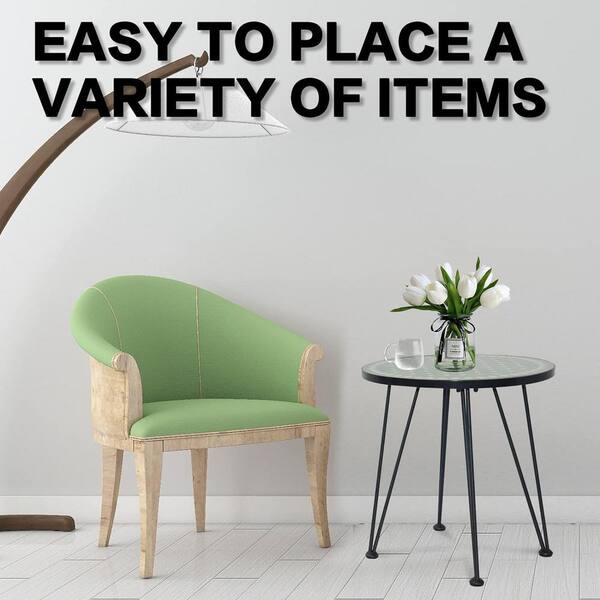Morden 17.7 in. Metal Round Outdoor Side Table Dining Table with Tile Table Top for Balcony Porch Outdoor Benches