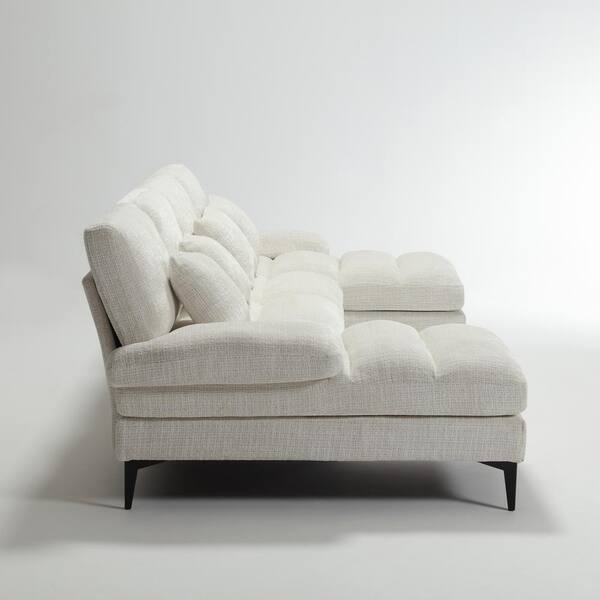 113 in. Flare Arm Linen Beige U-Shaped Sectional Sofa with Foam Cushion Lounge Chaise and Pillow