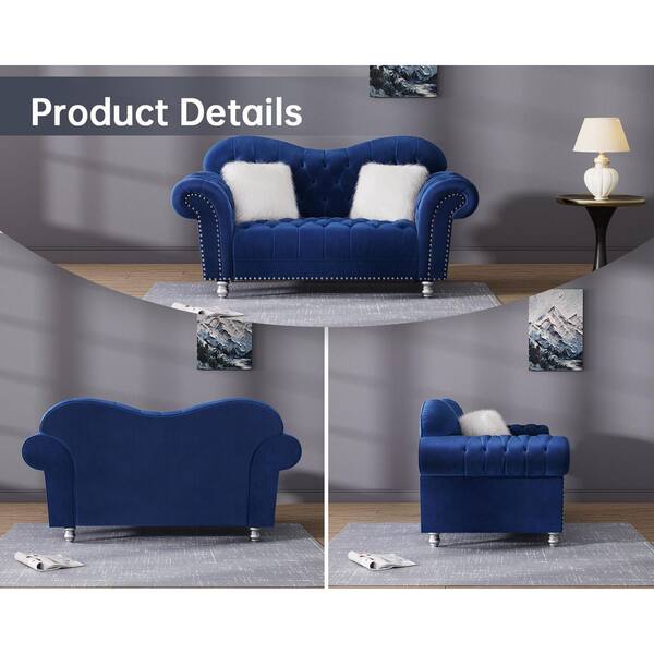 69 in. Velvet 2-Seater Blue Loveseat America Chesterfield Tufted Camel Back