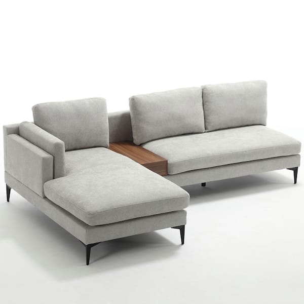 Comfortable Deep Couch, 2-Piece Grey Linen Living Room Set L Shaped Sectional Sofa with Reversible Lounge Chaise