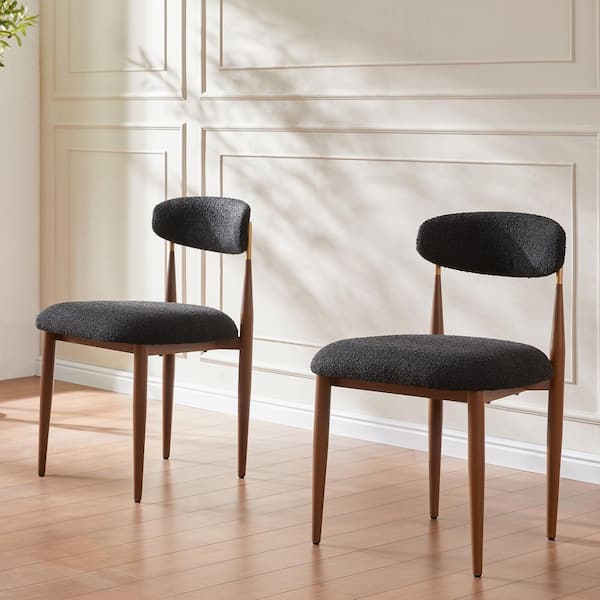 Modern 3-Piece Faux Marble Dining Table Top with Boucle Armless Chair in Black Dining Room Set for Kitchen