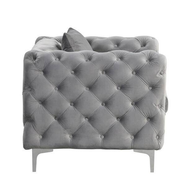 Modern Contemporary 2-Piece Accent Chair and Loveseat with Deep Button Tufting Dutch Velvet Top in Gray