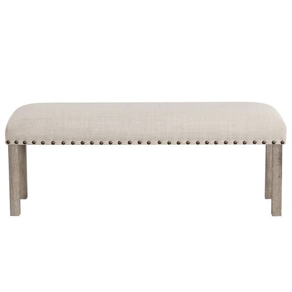 Rustic Beige 47" Fabric Upholstered Wood Dining Benches Entryway Bedroom Bench with Nailhead Trim