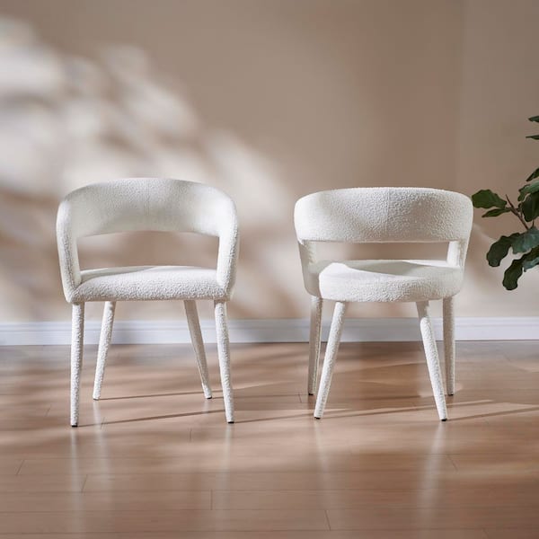 • Cloud white boucle upholstery offers an elegant touch