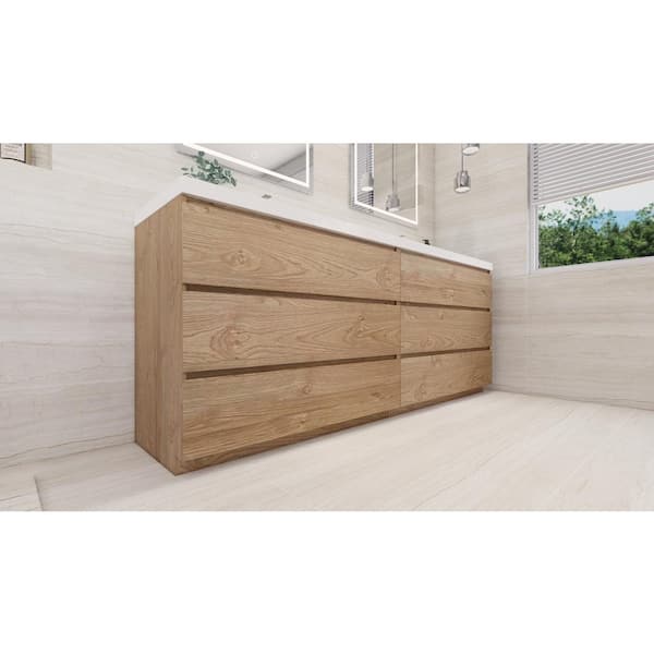 Angeles 84 in. W Bath Vanity in New England Oak with Reinforced Acrylic Vanity Top in White with White Basin
