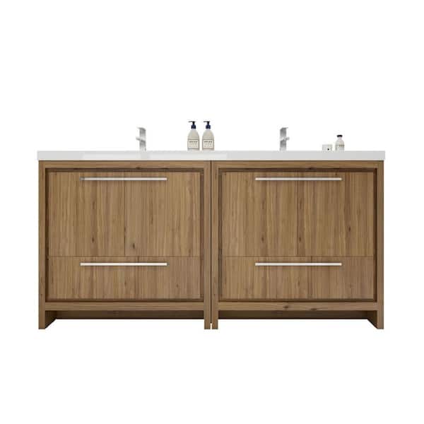 Dolce 72 in. W Bath Vanity in Natural Oak with Reinforced Acrylic Vanity Top in White with White Basins