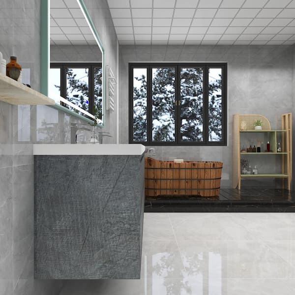 Sage 84 in. W Vanity in Smoke Oak with Reinforced Acrylic Vanity Top in White with White Basin