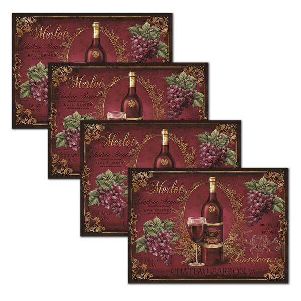 MHF Home Red Wine 18 in. W x 13 in. L Polypropylene Placemat Set (4-Pack)