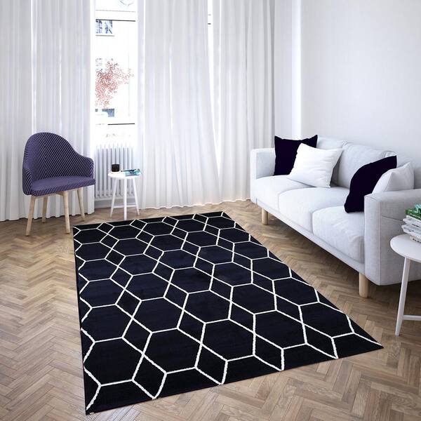 Moroccan Collection Navy 5 ft. x 7 ft. Geometric Polypropylene Area Rug