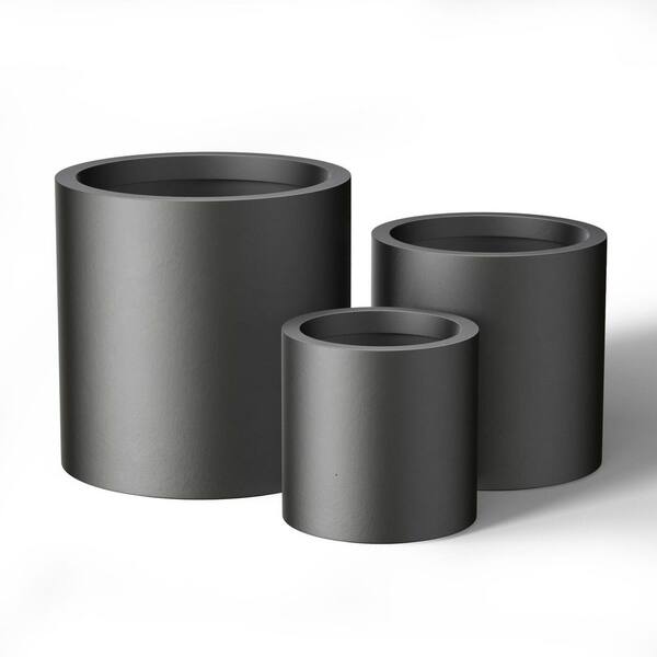 10, 13,16 in. Dia Charcoal Black Large Tall Round Concrete Planter/Garden Plant Pot for Indoor and Outdoor(Set of 3)