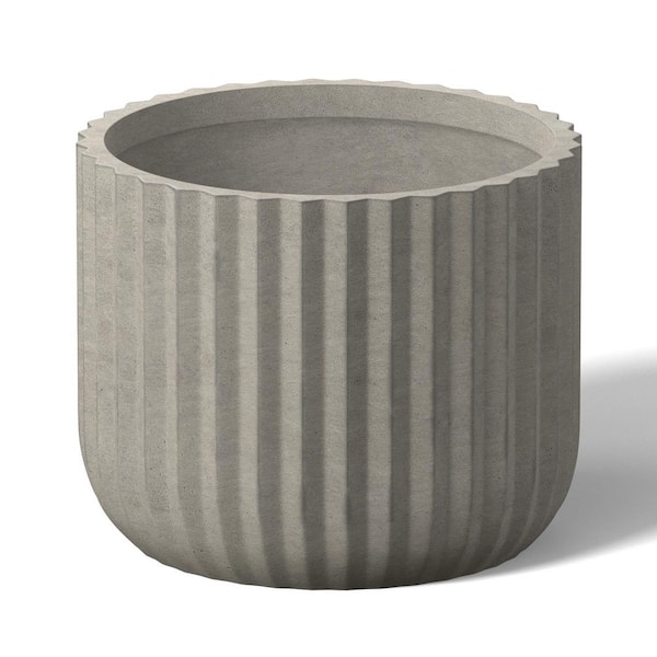11.4 in. Medium Light Gray Concrete Round Planter / Pot with Drainage Holes