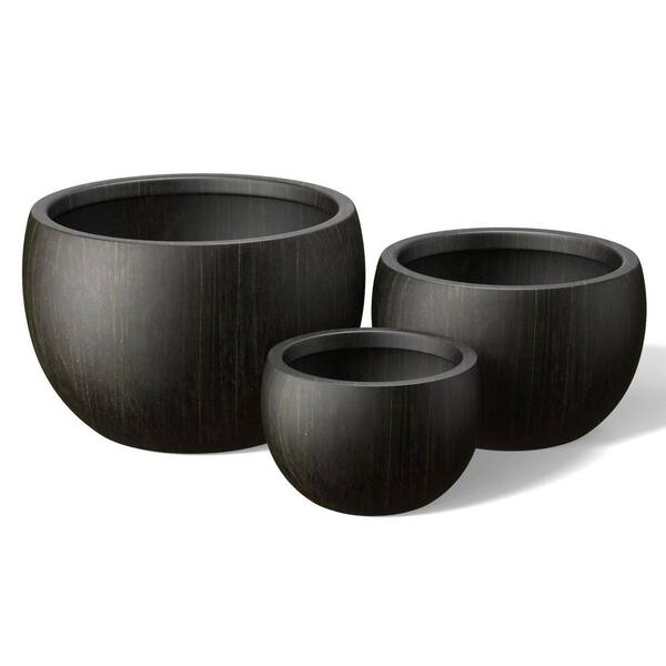 11.5 in., 15 in., 19 in. Bronzed Black(Enhanced Core) Concrete Round Planter / Pot with Drainage Holes (Set of 3)