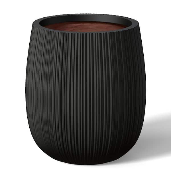 13 in. Medium Charcoal Black (Enhanced Interior) Concrete Round Planter / Pot with Drainage Holes