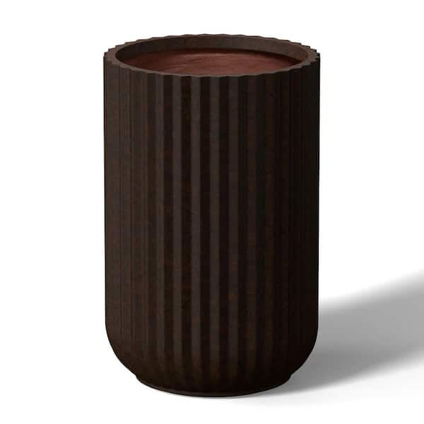 14 in. Large Earthy Brown (Enhanced Interior) Concrete Round Planter/Pot with Drainage Holes and Vertical Ribbed Texture
