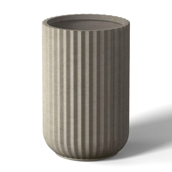 14 in. Large Light Gray Concrete Round Planter/Pot with Drainage Holes and Vertical Ribbed Texture