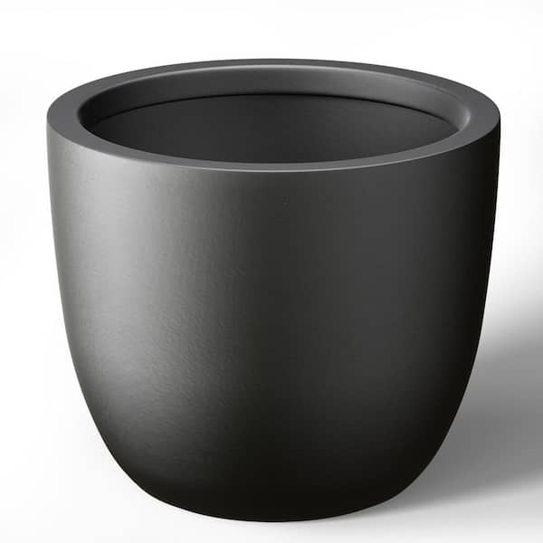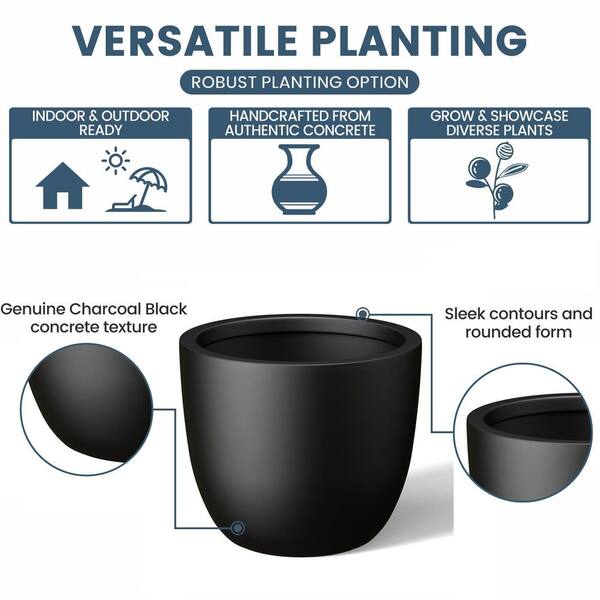 14 in. Medium Charcoal Black (Enhanced Interior) Concrete Round Planter / Pot with Drainage Holes