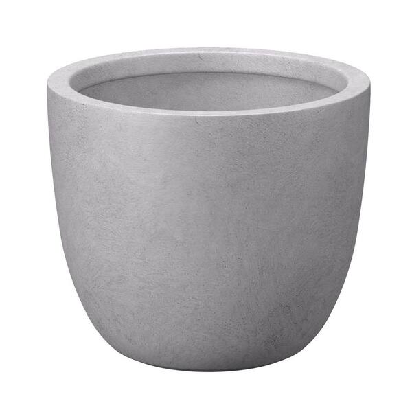 14 in. Medium Light Stone Gray Concrete Round Planter / Pot with Drainage Holes