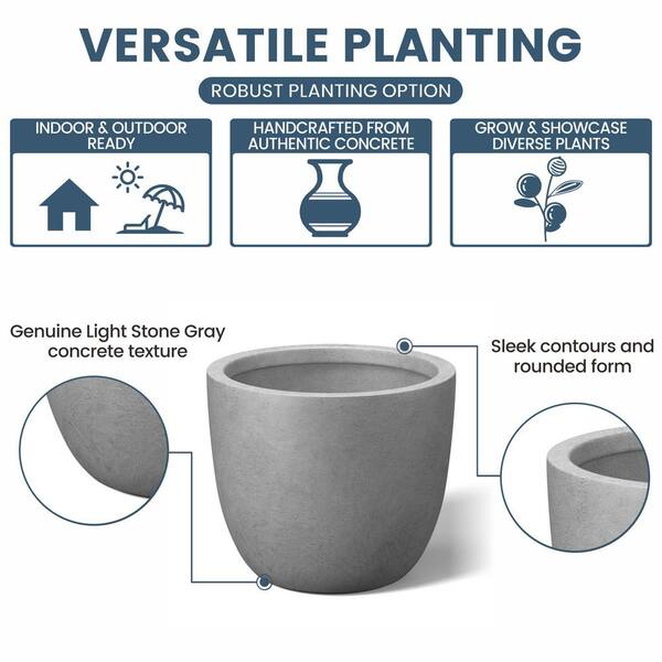 14 in. Medium Light Stone Gray (Enhanced Interior) Concrete Round Planter / Pot with Drainage Holes
