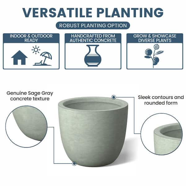 14 in. Medium Sage Gray (Enhanced Interior) Concrete Round Planter / Pot with Drainage Holes
