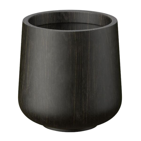 17 in. Large Bronzed Black Concrete Round Planter / Pot with Drainage Holes