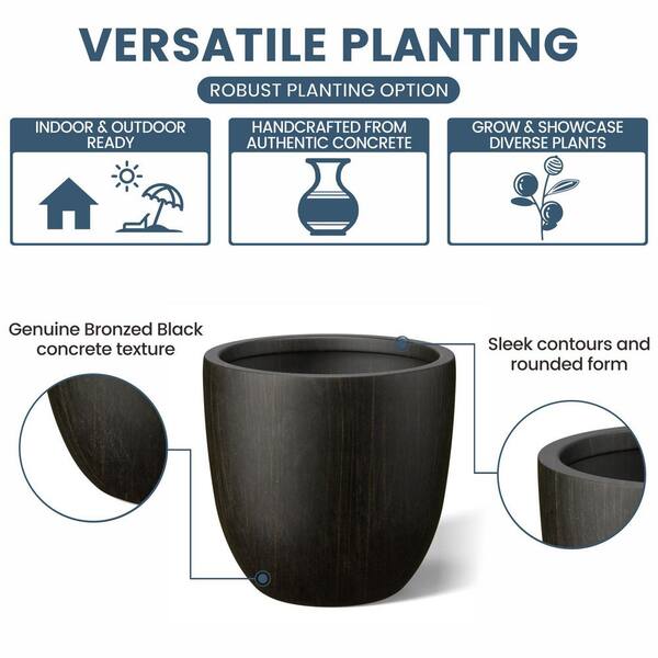 18 in. Large Bronzed Black (Enhanced Interior) Concrete Round Planter / Pot with Drainage Holes